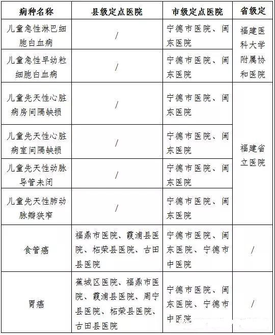 宁德市建档立卡农村贫困人口大病专项救治定点医院