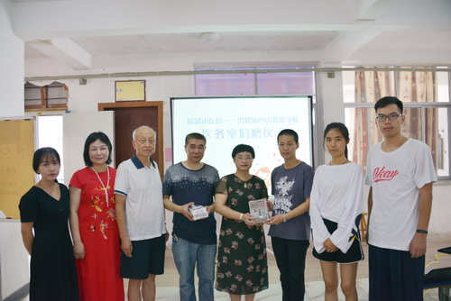 8月12日,我院前院长纪元忠、副院长李一春等一行五人来到贯岭镇西山村德源学校,为学校捐赠一些医疗用品,帮助学校筹建一间医务室。