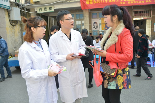 4月7日是世界卫生日,今年的主题是“一起来聊聊抑郁”。为宣传治疗抑郁症的重要性,提高社会各界对此项疾病的关注,4月5日上午,由福鼎卫计局主办,我院、市疾控中心、福鼎精神病院共同承办的“共同面对抑郁,共促心理健康”的宣传活动在我院心理门诊前如期举行。活动吸引了不少过往群众,共有来自承办单位的精神科医师2名、专业心理治疗师2名、心理咨询师1名、疾控防治中心医务人员2名、护士2名为来往群众答疑解难。为了配合活动顺利进行,市卫计局和我院发展办还专门组织人员协助现场疏导、引领及为来往群众分发宣传单等工作。